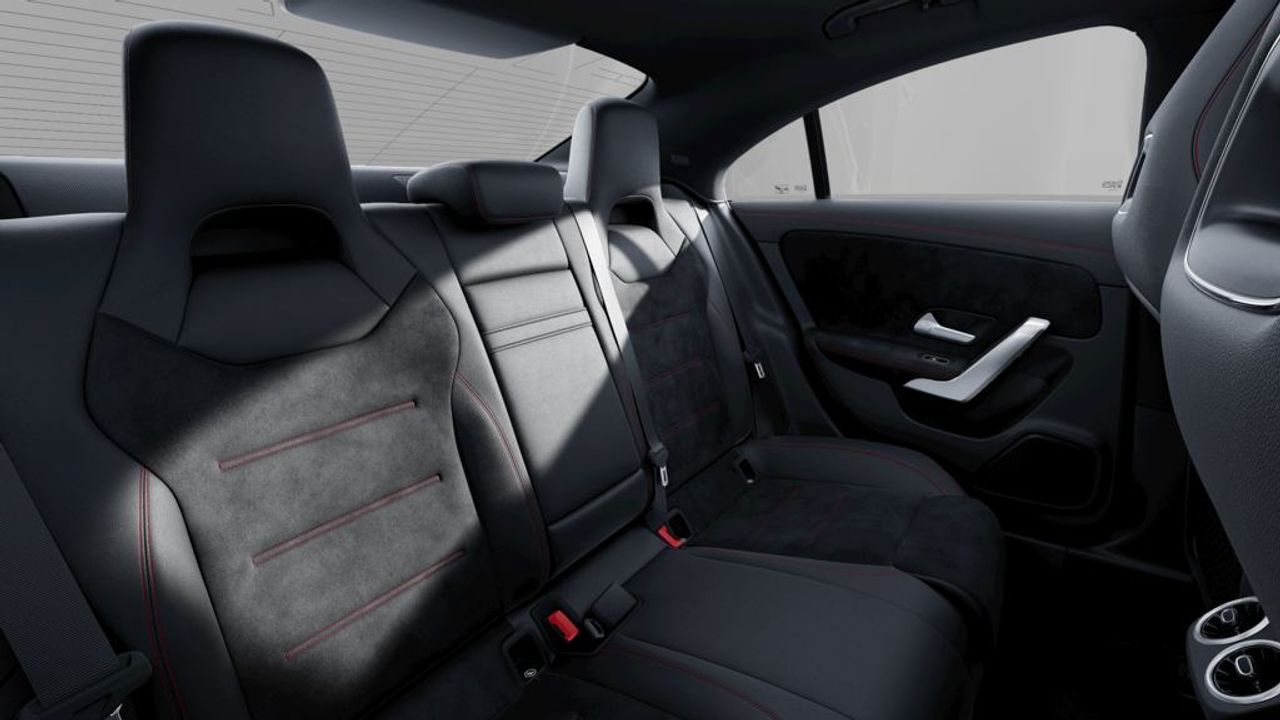 - [DLI02] Asistente a la conducción: activo Asistente de mantenimiento de carril - [876] Iluminación ambiente - [893] Keyless Go Instalación de arranque - [CE1] Limpiaparabrisas con Sensor de lluvia - [950] Línea de diseño y equipamiento AMG Line - [U59] Paquete asientos confort - [U62] Paquete Luz y Visión - [897] Cargador wireless para Smartphone - [781] Llantas de aleación 7,5x18 (AMG, 5 radios dobles, Negro) - [PDB] Paquete de equipamiento: Advanced Plus - [P17] Paquete-Keyless-Go - [P55] Paquete-Night - [B0MM0] Pintura metalizada - [14U] Smartphone integrad. - [840] Ventanilla lateral detrás y Luna trasera tintadas